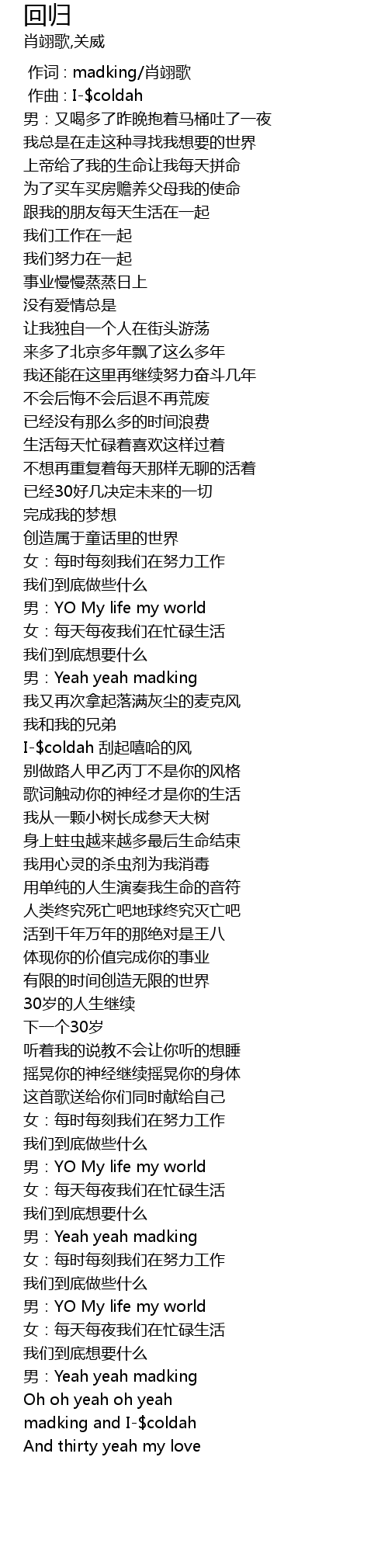 | [00:00.000] | 作词 : madking/肖翊歌 |