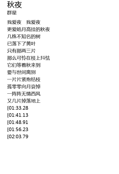 | [02:30.49][01:41.13] | 更爱皓月高挂的秋夜 |