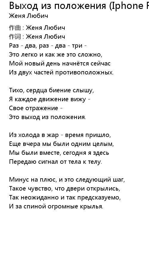 作词 : Женя Любич