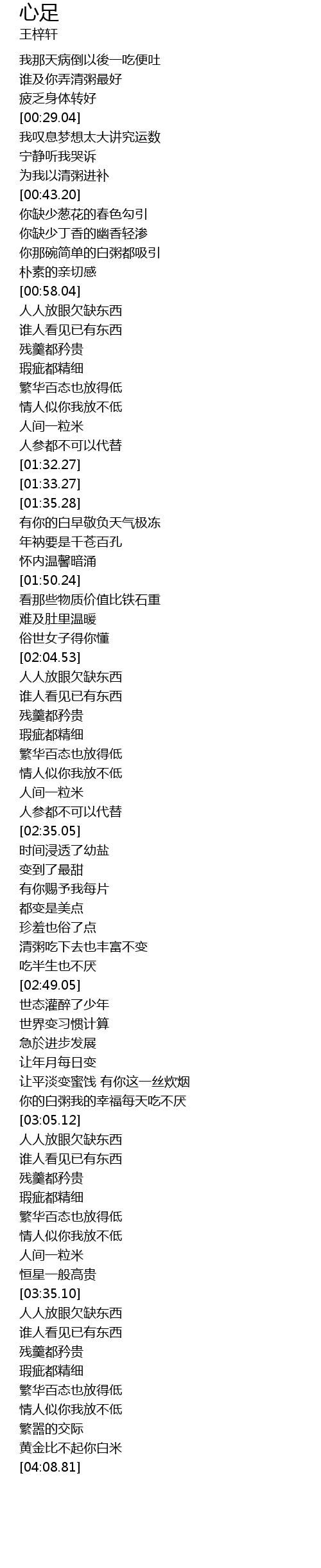 | [03:03.81] | 你的白粥我的幸福每天吃不厌 |