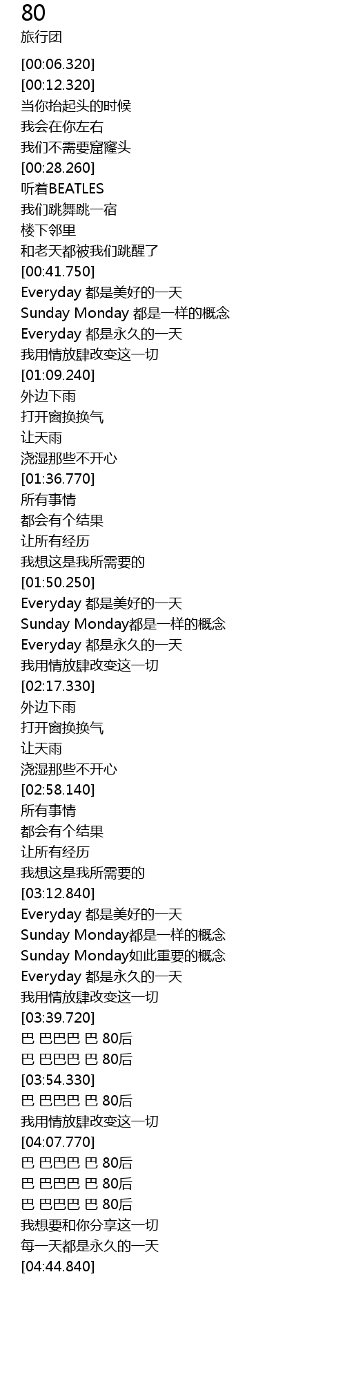 | [03:43.060] | 巴 巴巴巴 巴 80后 |