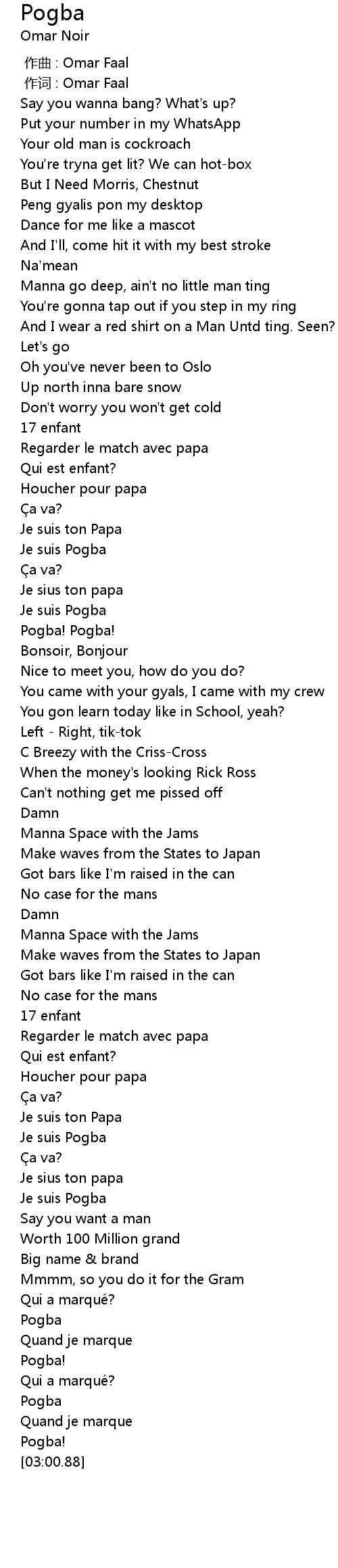 | [01:03.95] | Je suis Pogba |