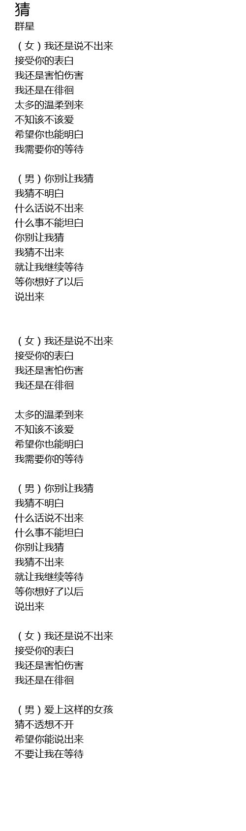 | nǚ wǒ hái shì shuō bu chū lái | |