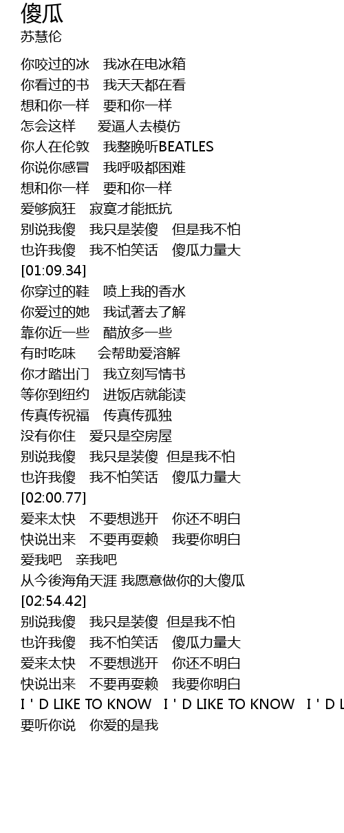 [01:54.15] yě xǔ wǒ shǎ  wǒ bù pà xiào huà  shǎ guā lì liàng dà
