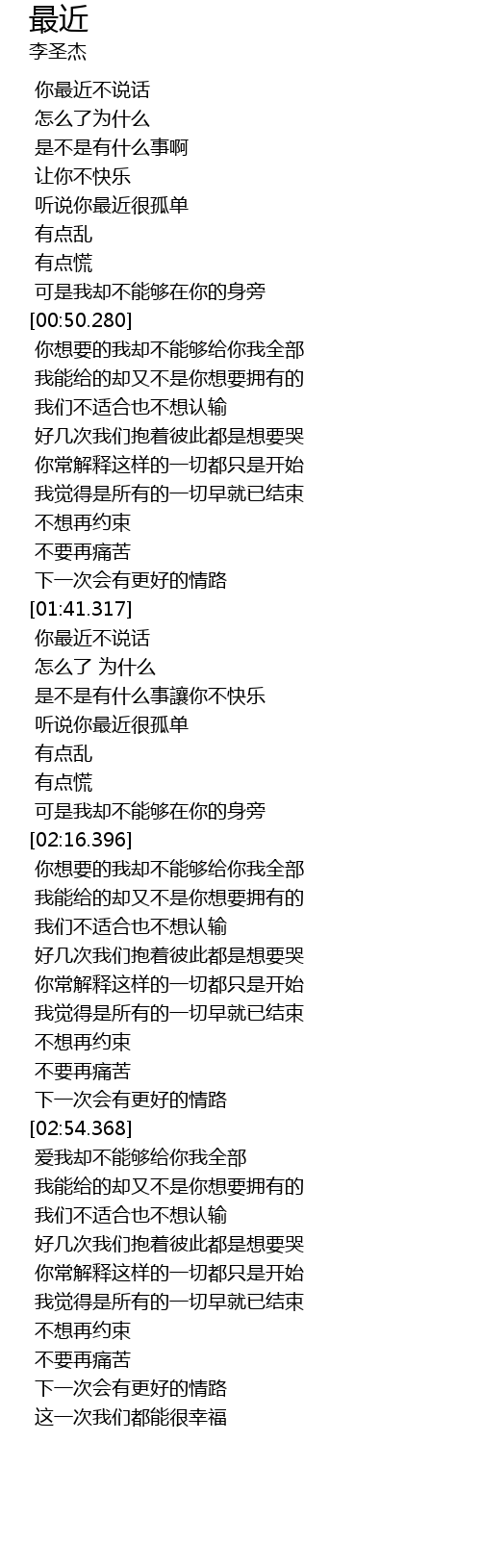 | [00:17.507] | 你最近不说话 |