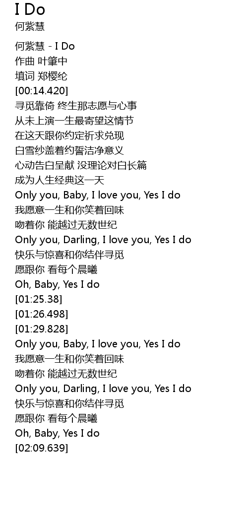 | [01:32.389] | Only you, Baby, I love you, Yes I do |