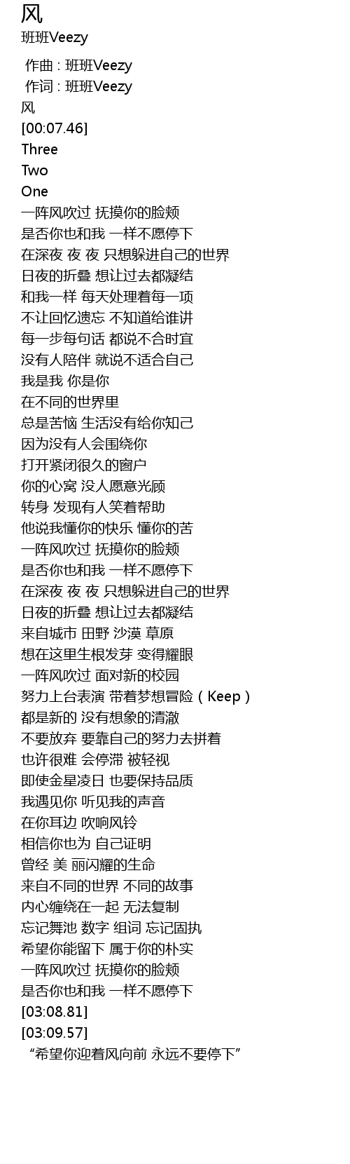 | [00:00.000] | 作曲 : 班班Veezy |