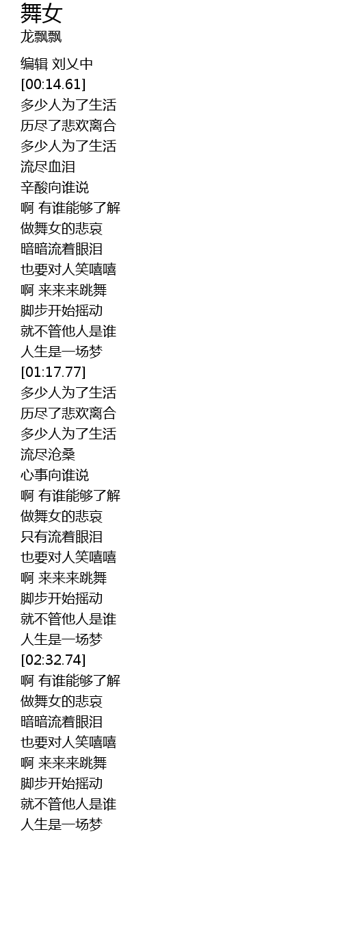 | [00:57.79] | a lái lái lái tiào wǔ |