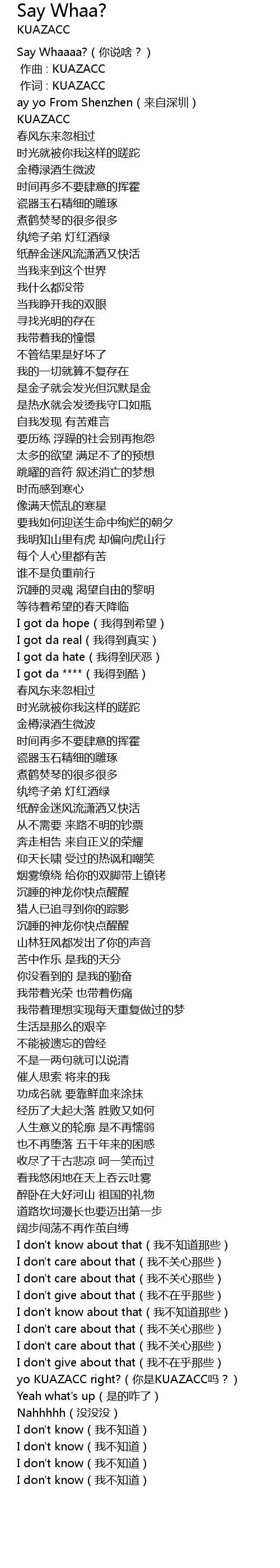 | Say Whaaaa?(你说啥?) | |