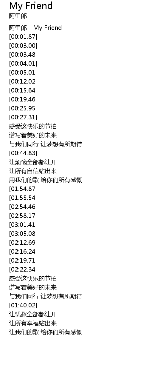 | [03:19.06][03:05.08][02:09.46][01:13.86] | I love you ,My friend! |