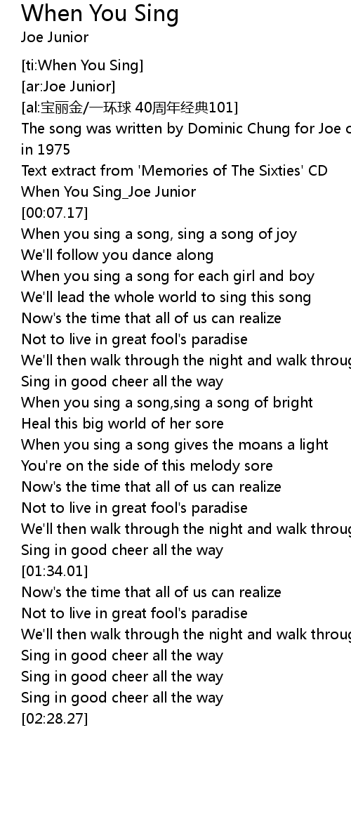 | [00:05.27] | When You Sing_Joe Junior |