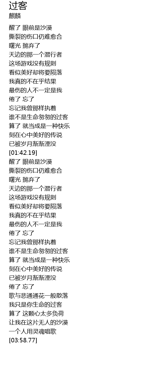 | [01:17.38] | 谁不是生命匆匆的过客 |