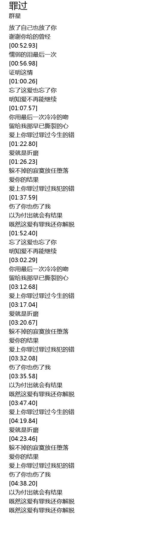 | [04:49.76] | 既然这爱有罪我还你解脱 |