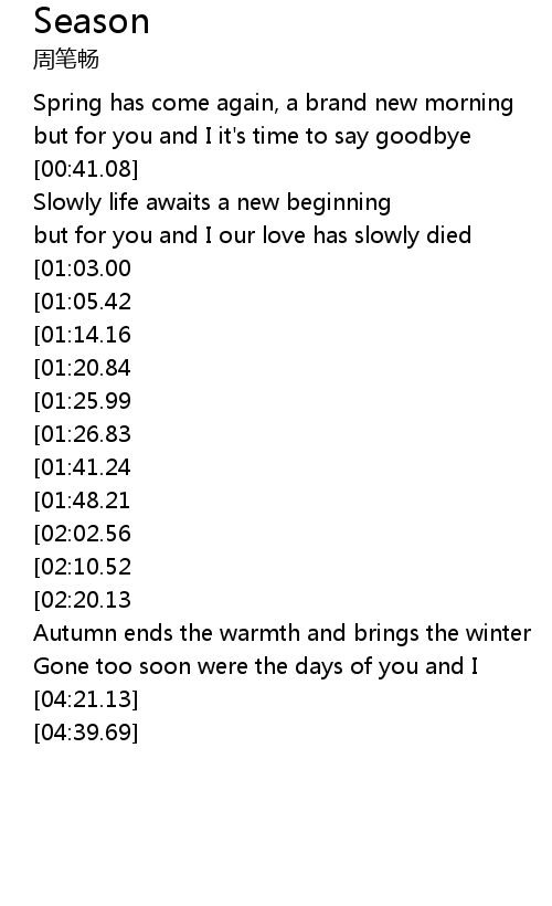 | [03:46.52][02:10.52] | 季节变迁 我的爱不改变 |