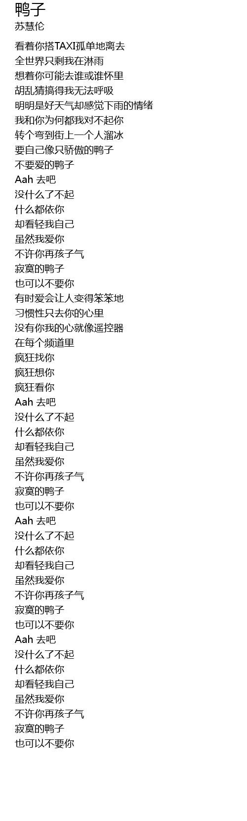 | [00:51.080] | 不要爱的鸭子 |