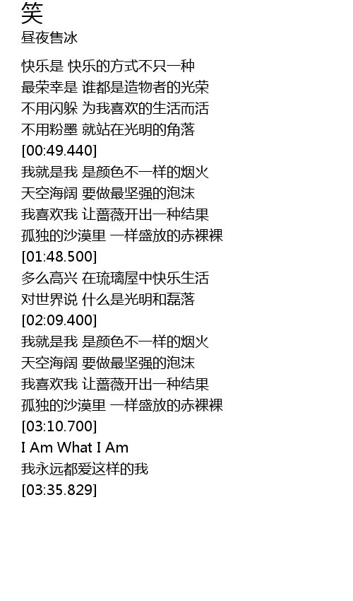 | [00:52.440] | 我就是我 是颜色不一样的烟火 |