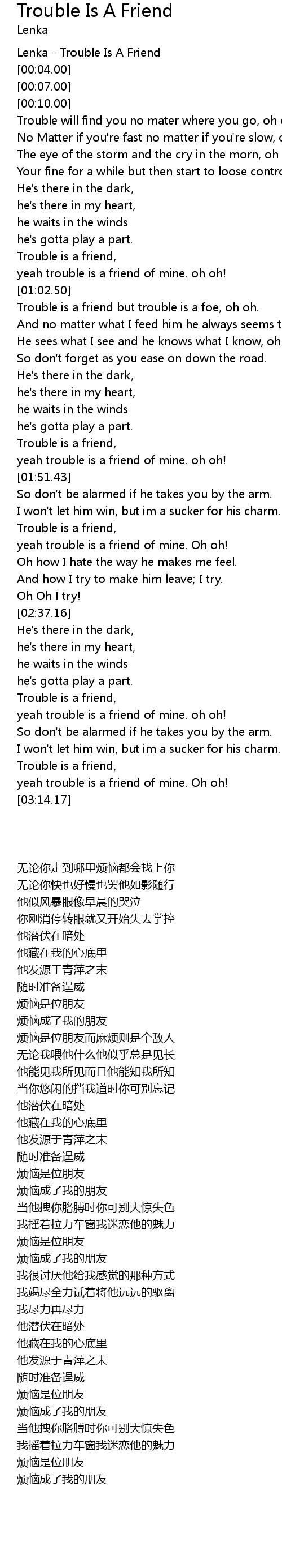 Lenka - Trouble Is A Friend |
