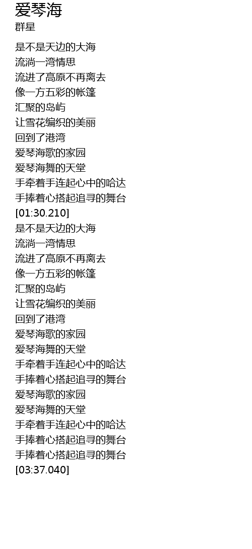 | [02:35.910] | 手牵着手连起心中的哈达 |