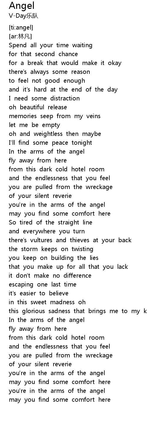 | [01:00.601] | In the arms of the angel |