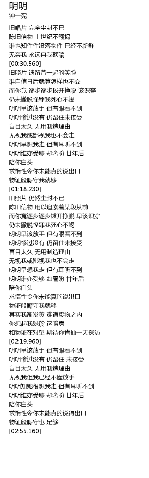 | [02:20.170] | míng míng zǎo gāi fàng shǒu dàn yǒu yǎn kàn bú dào |