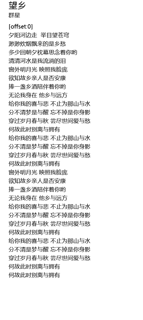 | [00:40.21] | 渺渺炊烟飘来的是乡愁 |