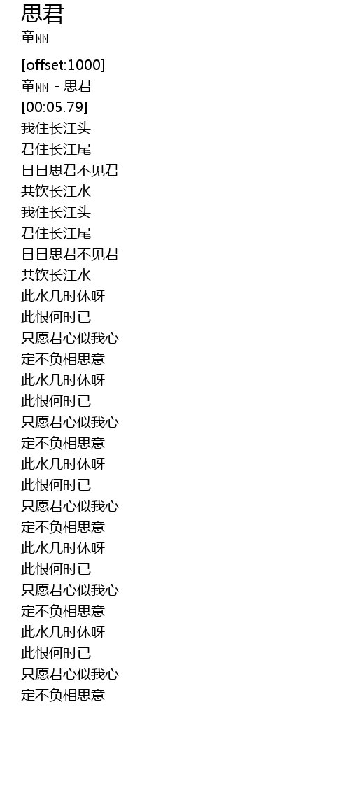 | [01:29.81] | zhǐ yuàn jūn xīn shì wǒ xīn |