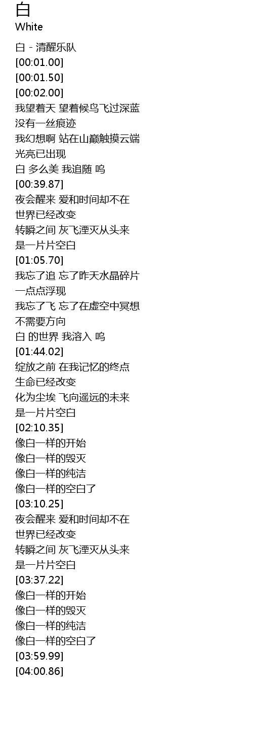 | [03:54.87] | 像白一样的空白了 |