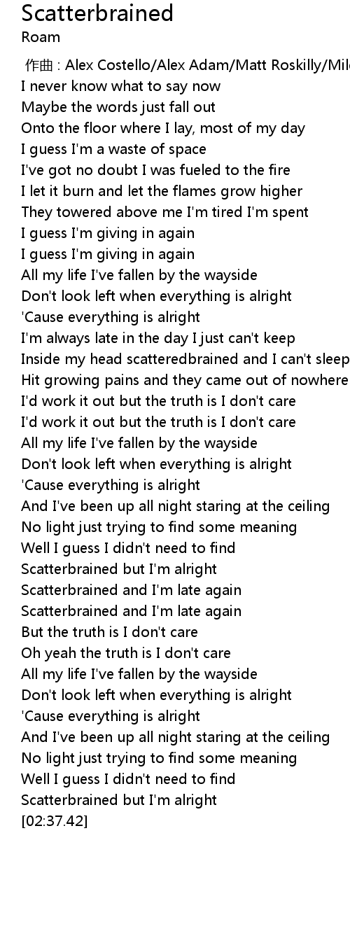 | [00:58.74] | Inside my head scatteredbrained and I can' t sleep |