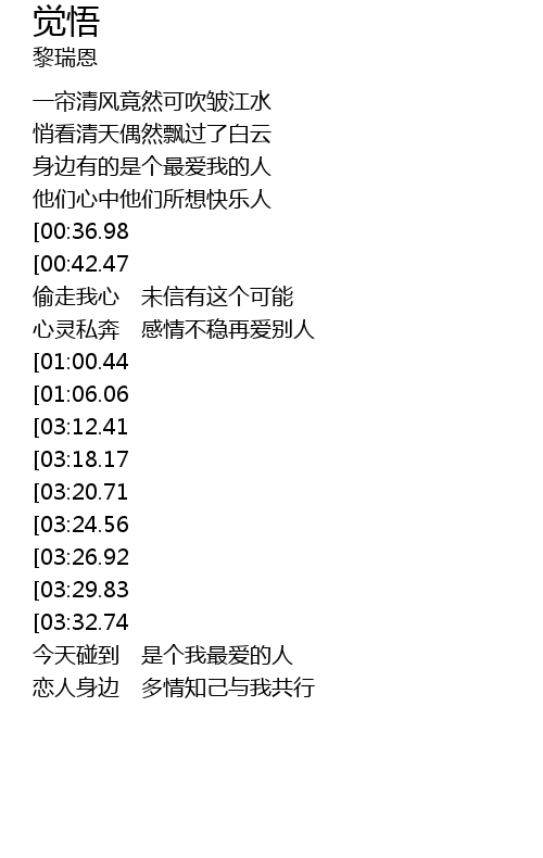 | [03:56.87][03:32.74][02:38.48][01:33.50] | 是明白觉悟爱是这样的原始 |