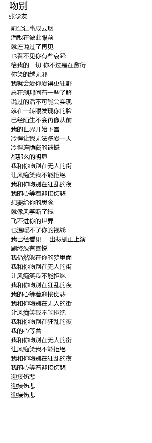 | [01:35.310] | wǒ hé nǐ wěn bié zài wú rén de jiē |