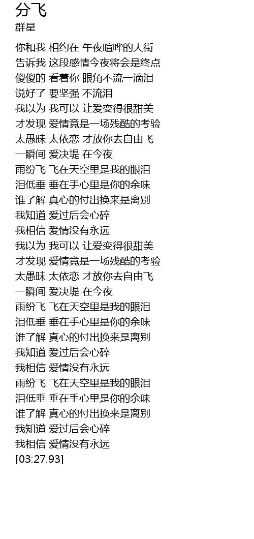 | [03:22.47] | 我相信 爱情没有永远 |