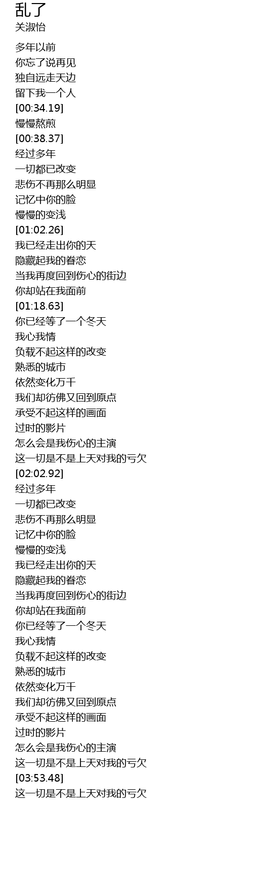 | [03:44.62] | 这一切是不是上天对我的亏欠 |