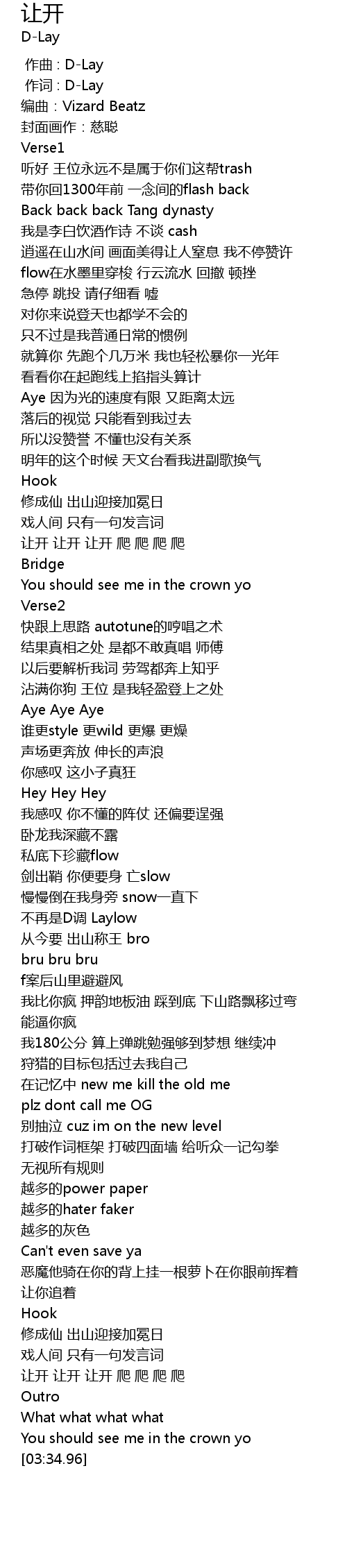 | [01:15.96] | 让开 让开 让开 爬 爬 爬 爬 |