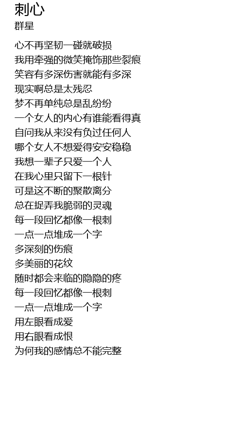 | [00:20.378] | 心不再坚韧一碰就破损 |