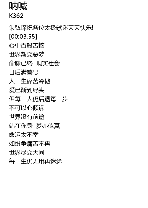 | [00:-0.50] | 朱弘琛祝各位太极歌迷天天快乐! |