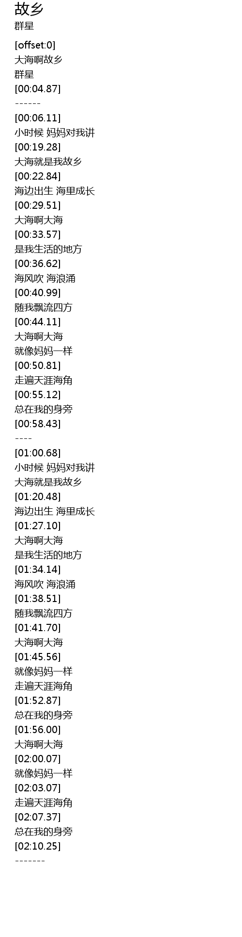 | [00:20.53] | 大海就是我故乡 |