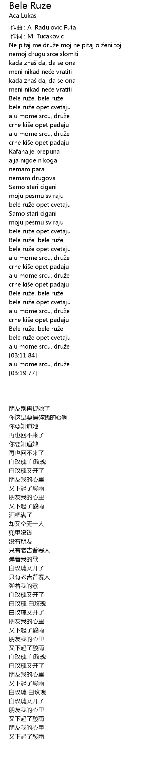 | [00:34.17] | Ne pitaj me druže moj ne pitaj o ženi toj |