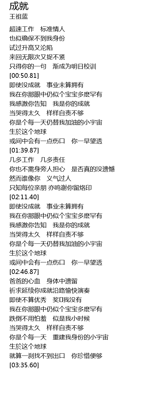 | [02:22.08] | 我感激你告知 我是你的成就 |