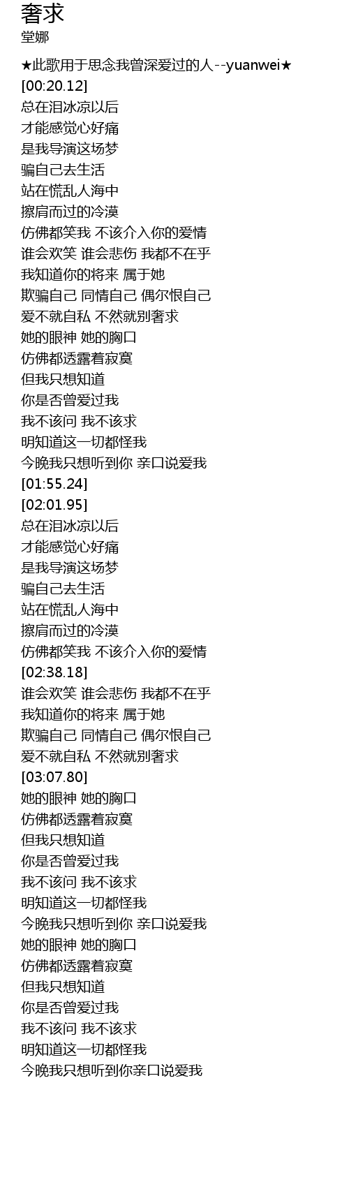 | [01:38.64] | wǒ bù gāi wèn wǒ bù gāi qiú |