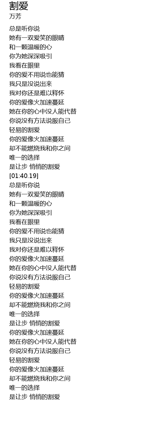 | [03:00.32] | 轻易的割爱 |