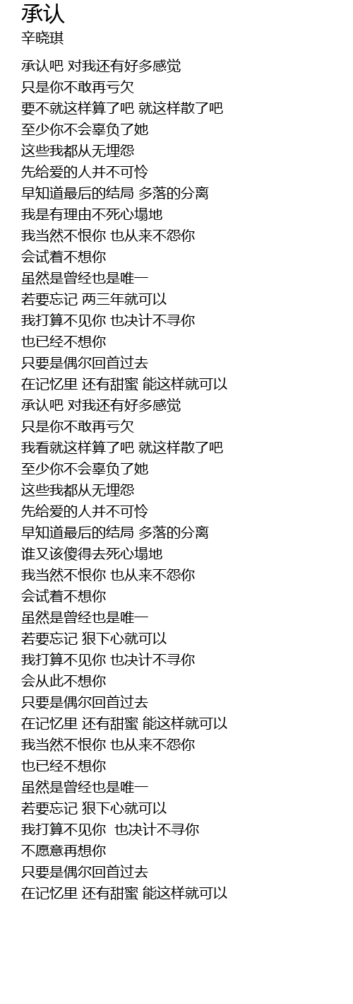 | [00:47] | 承认吧 对我还有好多感觉 |