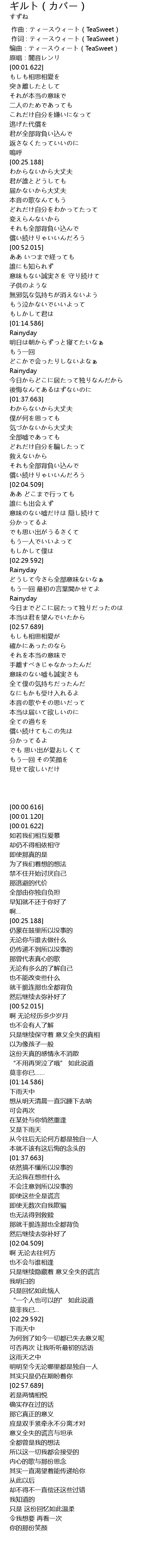 | [02:11.032] | 意味のない嘘だけは 隠し続けて |