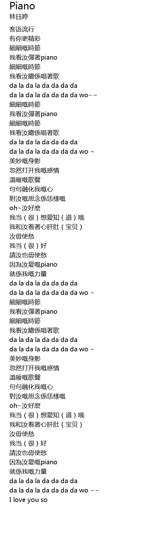 | [03:32.80] | 因為汝愛嘅piano |