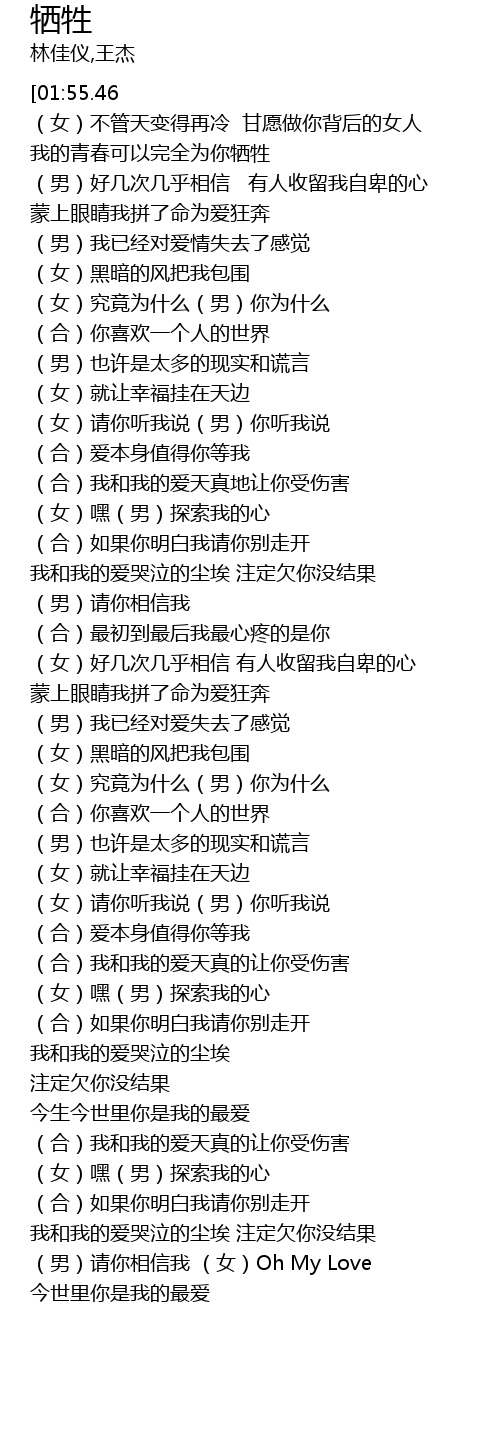 | [00:18.55] | 我的青春可以完全为你牺牲 |