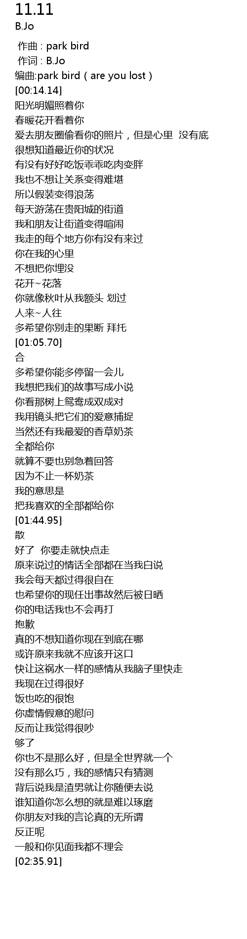 | [00:13.70] | bian qu: park bird are you lost |