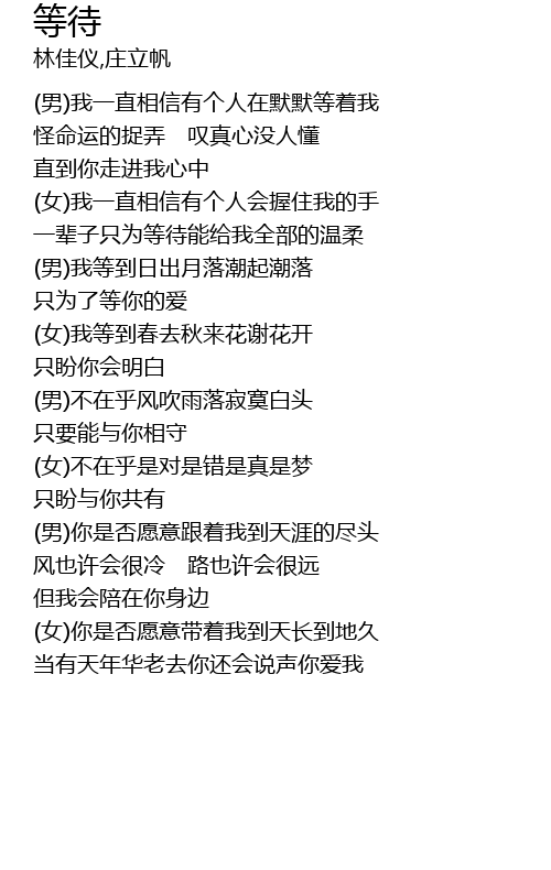 | (男)你是否愿意跟着我到天涯的尽头 | |