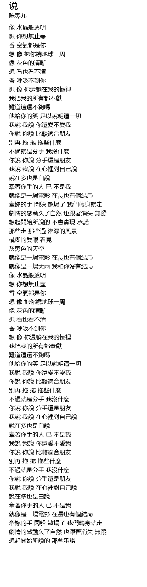 | [03:54.630] | 我說 我說 在心裡對自己說 |