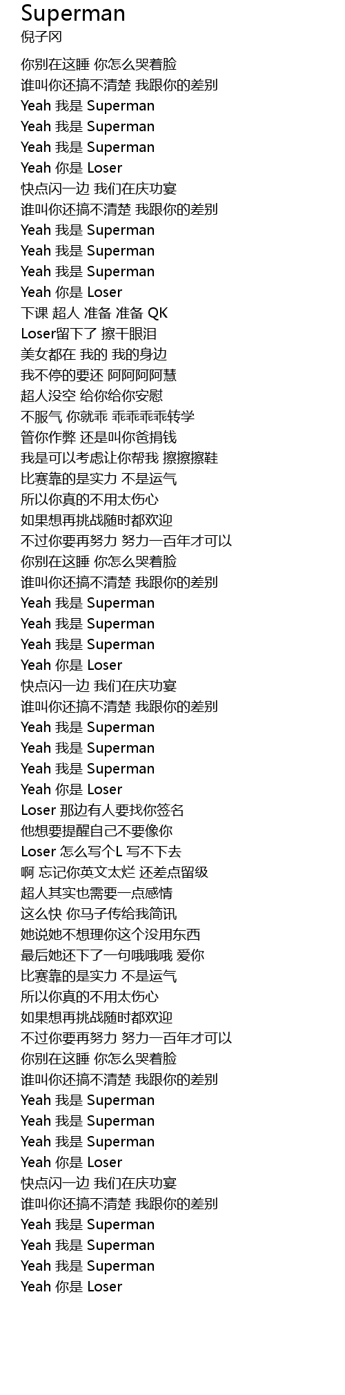 | [00:52.410] | 超人没空 给你给你安慰 |
