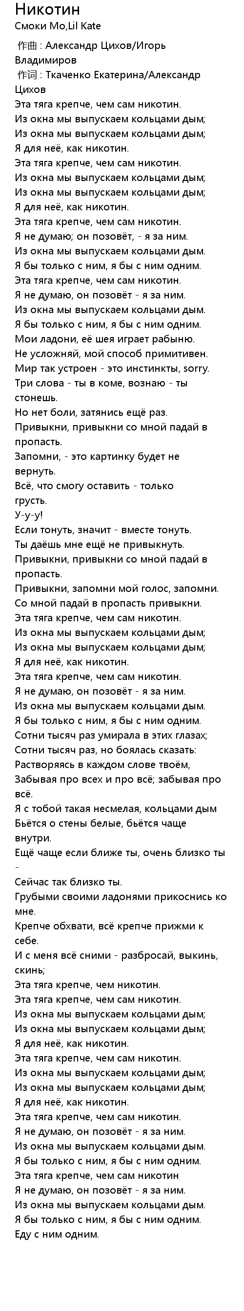 作词 : Ткаченко Екатерина/Александр Цихов |
