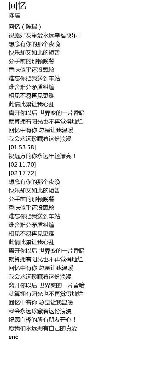 | [00:00.05] | 回忆(陈瑞) |
